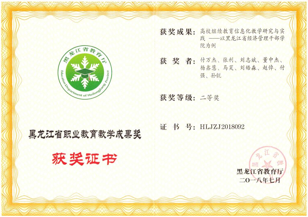 教学工作与教学研究融为一体,教研成果和奖项收获颇丰。在深入开展网络教学实践中不断发现问题,解决问题,进行教学反思过程中,注重网络教学研究,逐步形成一系列的教研成果。先后发表核心期刊论文两篇;完成省级重点课题三项;出版普通高等教育“十四五”规划教材——动漫精品课《财务管理》配套教材一部,校本教材六部,获校级教学成果一等奖一项、二等奖一项,校级科研成果奖两项。《高校继续教育信息化教学研究与实践——以黑龙江省经济管理干部学院为例》于2018年荣获黑龙江省教学成果二等奖,《构建“一体两翼三维”信息化教学体系,探索实践高职新型育人模式》于2020年荣获黑龙江省教学成果二等奖。