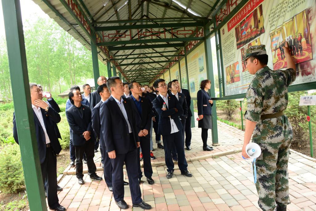 5月17日下午,校党委副书记周家郁,党委委员、组织部部长钟敏强带领机关党员39人,身着校服佩戴党徽,来到哈尔滨三五将军文化博物馆,开展主题教育活动。参加活动的党员怀着崇敬心情向“东北民主联军将士纪念塔”敬献花束,在中国魂广场“南湖红船”前重温入党誓词。全体人员参观了将军文化博物馆、开国将帅堂、东北野战军名将馆、东北抗联纪念园、援老抗美纪念园、解放军著名九大战役浮雕等园区,缅怀革命先烈的丰功伟绩。
