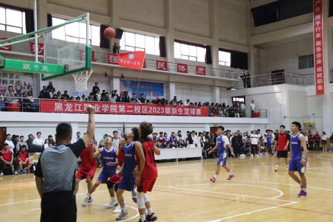 10月23日中午,第二小区2023级新生男子篮球赛在体育馆正式拉开大幕。各二级学院党政领导、全体学工干部、部分老师和学生到场为选手加油助威。