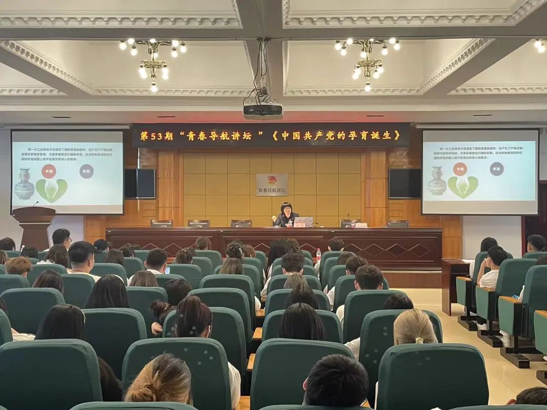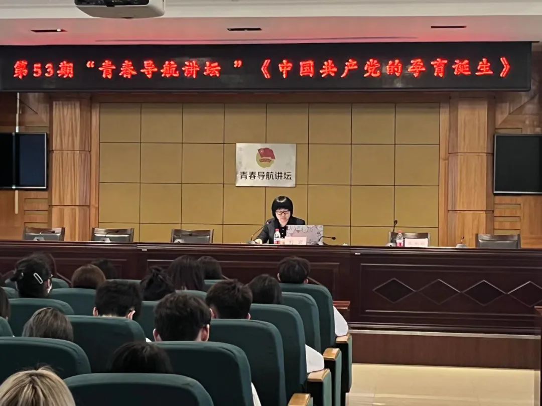 讲座中,刘岩副教授结合辛亥革命、五四运动的爆发以及中国共产党诞生的时代背景及重大意义,重点讲解了中国共产党孕育的思想基础、阶级基础和理论基础。她特别指出,青年是党的历史的重要参与者,也是实现中华民族伟大复兴历史伟业的中坚力量,使命光荣、责任重大,希望同学们要做有远大理想抱负的青年!要做有深厚家国情怀的青年!要做有伟大创造力的青年!