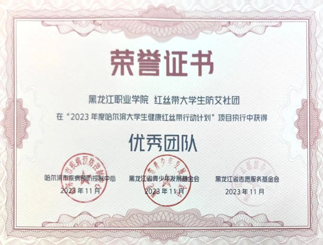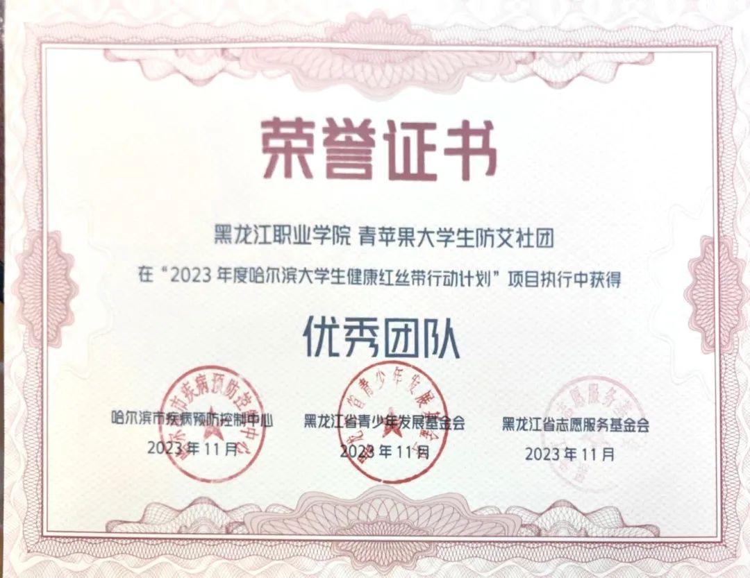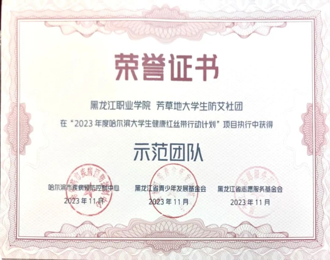2023年第二届“哈尔滨大学生健康红丝带行动计划”共评选出的3支最佳示范团队、3位最佳示范指导教师、6位最佳宣讲员、5位最佳短视频创作者、12支示范团队、12位示范指导教师。beat365芳草地大学生防艾社团获得示范团队奖,是哈市高职院校唯一获奖院校。