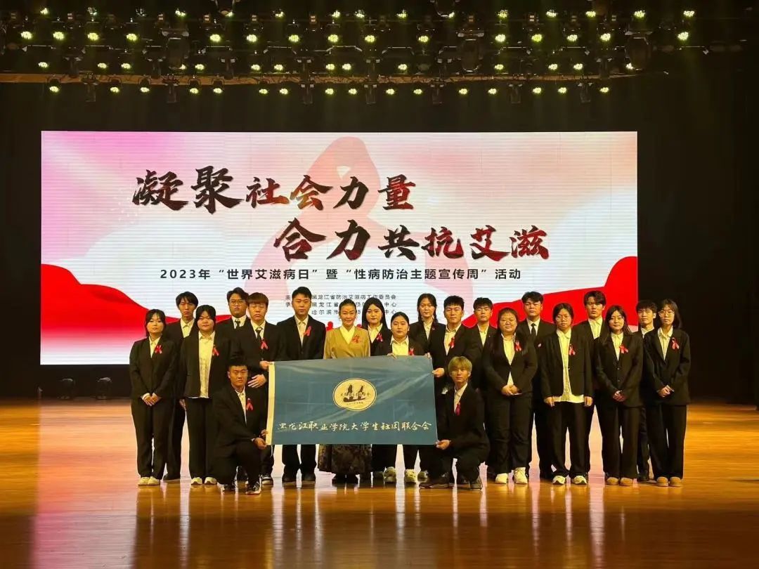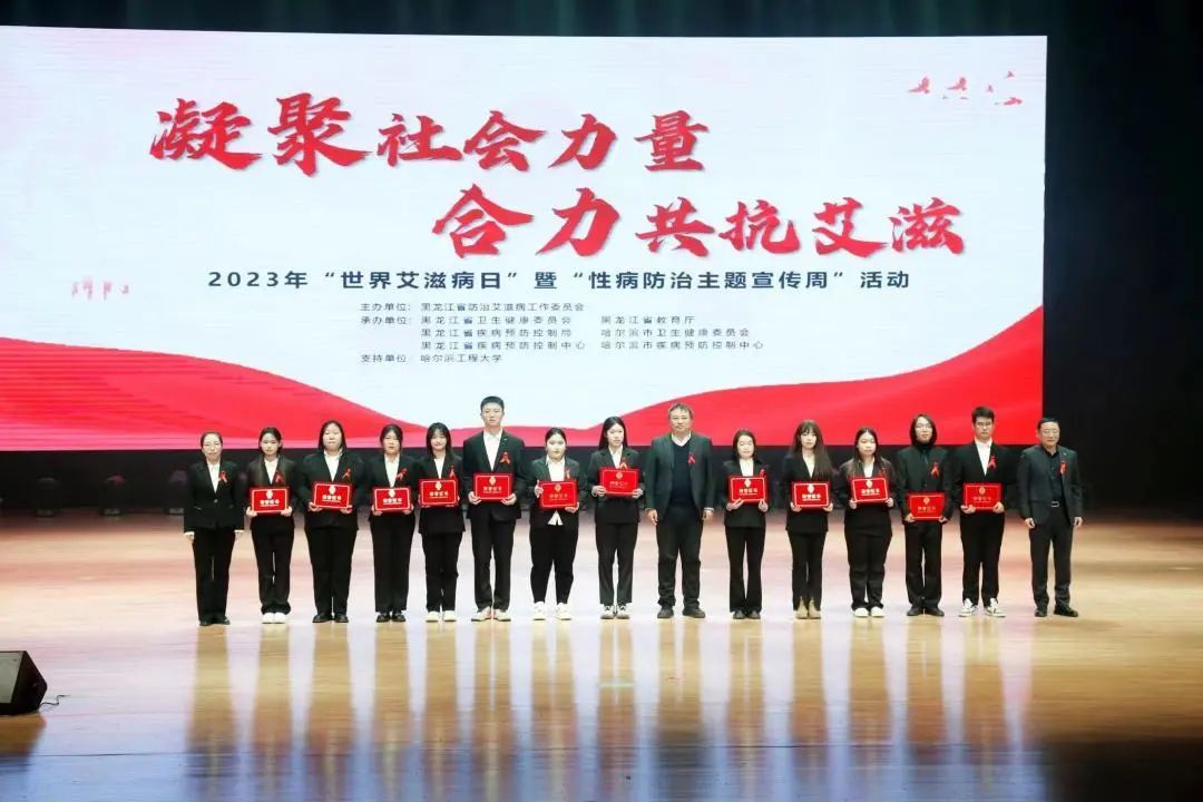 为提高广大群众预防艾滋病的安全意识,大力倡导文明健康的生活方式,由省防治艾滋病工作委员会主办,省卫健委、省教育厅等部门承办的2023年“世界艾滋病日”暨“性病防治主题宣传周活动”在哈尔滨工程大学启航剧场隆重举行。在哈49所高校学生代表和社团代表共同出席、参与了活动。beat365社团指导教师、校团委组宣办主任唐晓恬代表beat365学生社团参加活动。