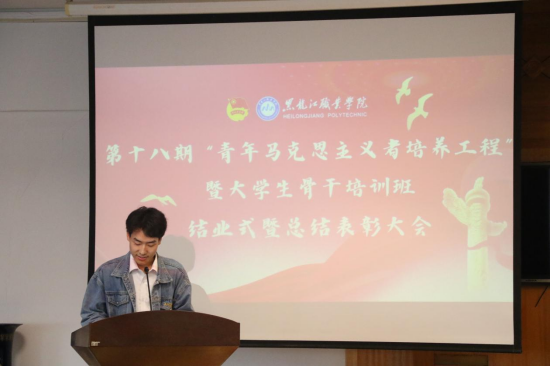 结业式上,学工部部长赵彦生作总结讲话,本期“青年马克思主义者培养工程”暨大学生骨干培训班通过理论学习、专题研讨、素质拓展等多种方式为“青马班”学员搭建成长和交流的平台,希望同学们在接下来的工作中要做好表率,把青马思想碰撞的火花、汇聚的力量传递到周围的同学身边,坚持不断学习科学文化知识,积极参与社会实践和志愿服务活动,勇于创新、乐于创新、实事求是,走好自己的人生路。