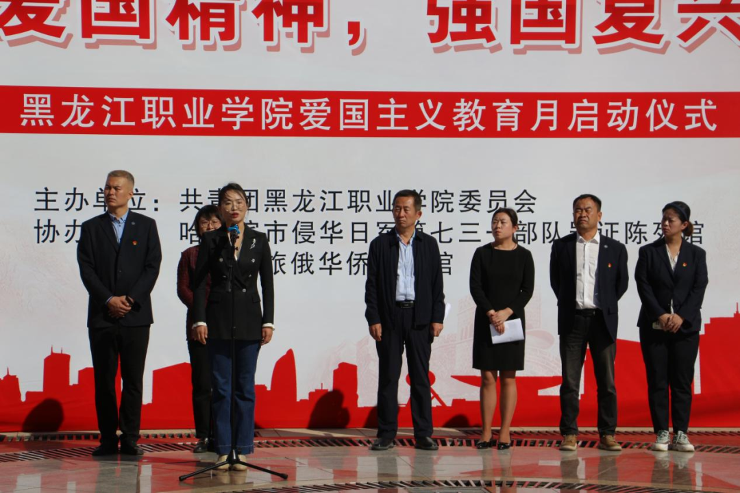 学校党委副书记周家郁书记发表讲话,他指出新时代的青年要热爱祖国热爱党,要让家国情怀深深扎根于心灵。要积极弘扬自强有为兴业报国的龙职精神,秉承明理、善思、笃行、乐学的学风,弘扬工匠精神、立志技能报国,以龙职青年心向党,强国有我显担当的豪迈,奋力书写为中国式现代化挺膺担当的青春篇章。