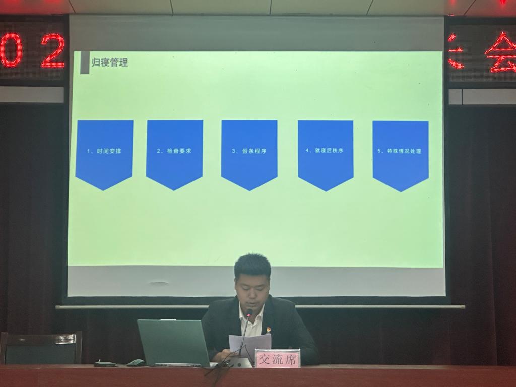 ▲公寓辅导员魏博讲解日常秩序及归寝管理