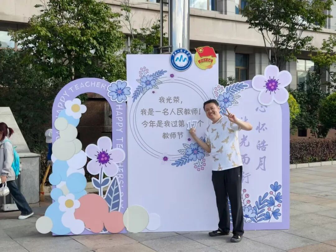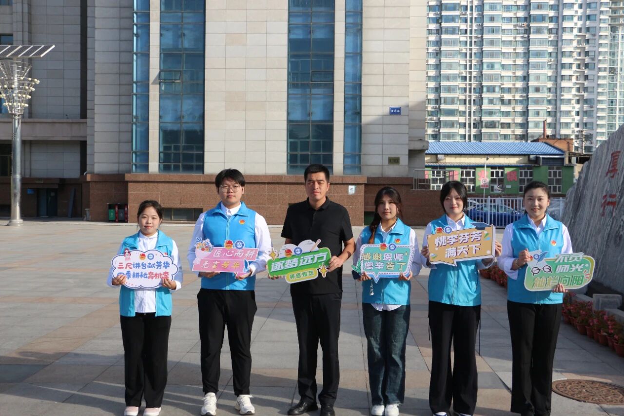 九月晨光和煦,师恩洒满校园。在第41个教师节到来之际,校团委精心策划了一系列主题活动,通过庄重的文化礼仪与温馨的互动环节,向全体教职工致以最诚挚的节日祝福,让尊师重教的氛围洋溢在校园的每个角落。