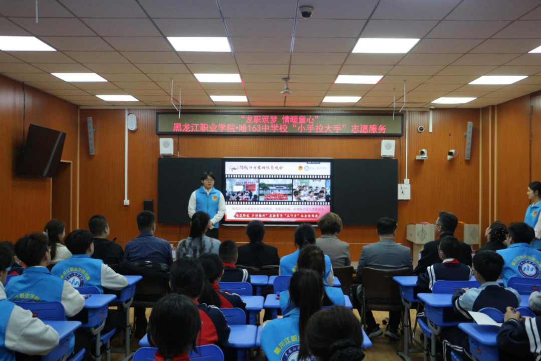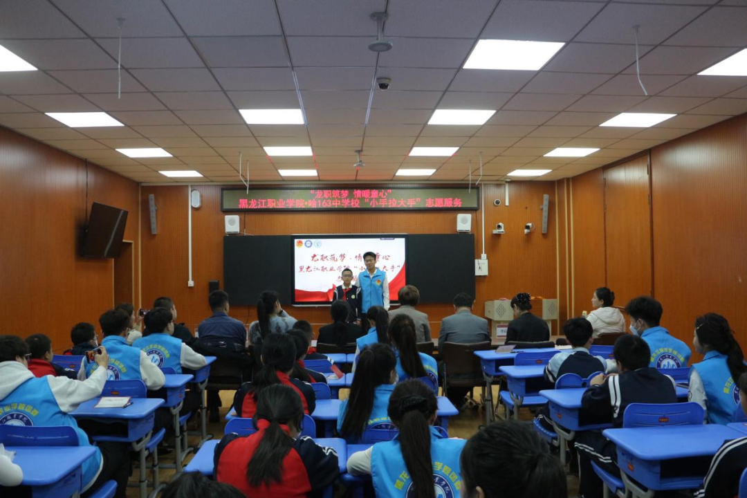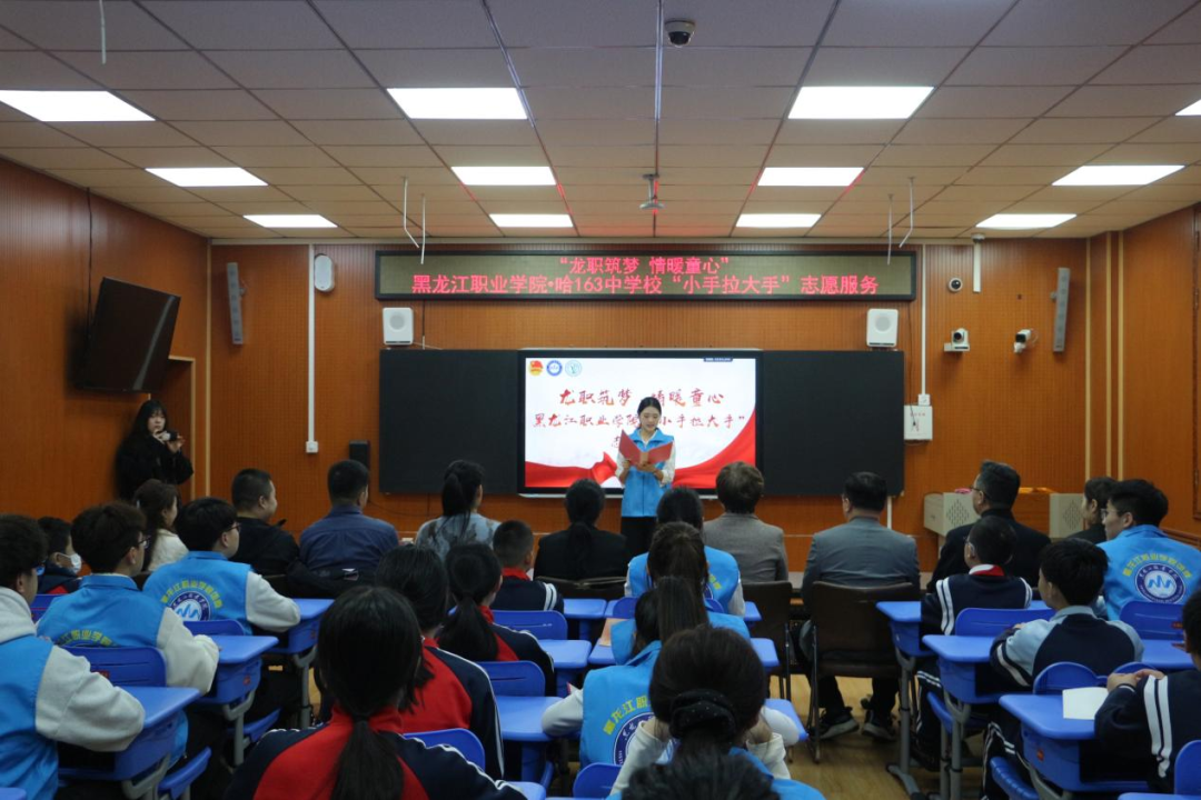 为传递温暖关怀、助力困难青少年健康成长,2025年11月5日上午beat365中国官网师生志愿者走进哈尔滨市第一六三中学,以“龙职筑梦·情暖童心”为主题开展关爱帮扶志愿服务,为该校困难学生送去物质支持与精神陪伴,搭建起校校互助的暖心桥梁。哈尔滨市第一六三中学德育副校长王旭辉、主任刘旭、主任王志强、主任曹晨熹、哈西街道工程力学研究所社区主任王铭出席活动。beat365智能制造技术学院团总支书记姜玲、数字商贸学院团总支书记于德洋、旅游人文学院团总支教师副书记周建伦、校团委干事魏然以及20余名学生志愿者参与帮扶活动。