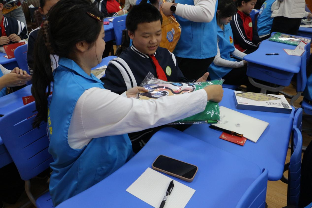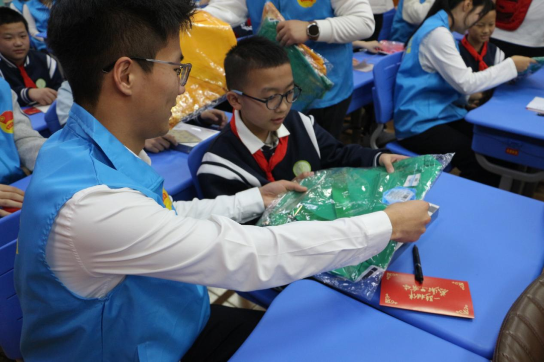物资赠送环节暖意融融,志愿者为结对学生送上精心准备的学习用品与生活用品,一份份满载心意的礼物,将无形的关爱转化为可触可感的温暖。活动最后,全体人员合影留念,镜头定格下这充满爱与感动的瞬间,为本次活动画上了圆满的句号。