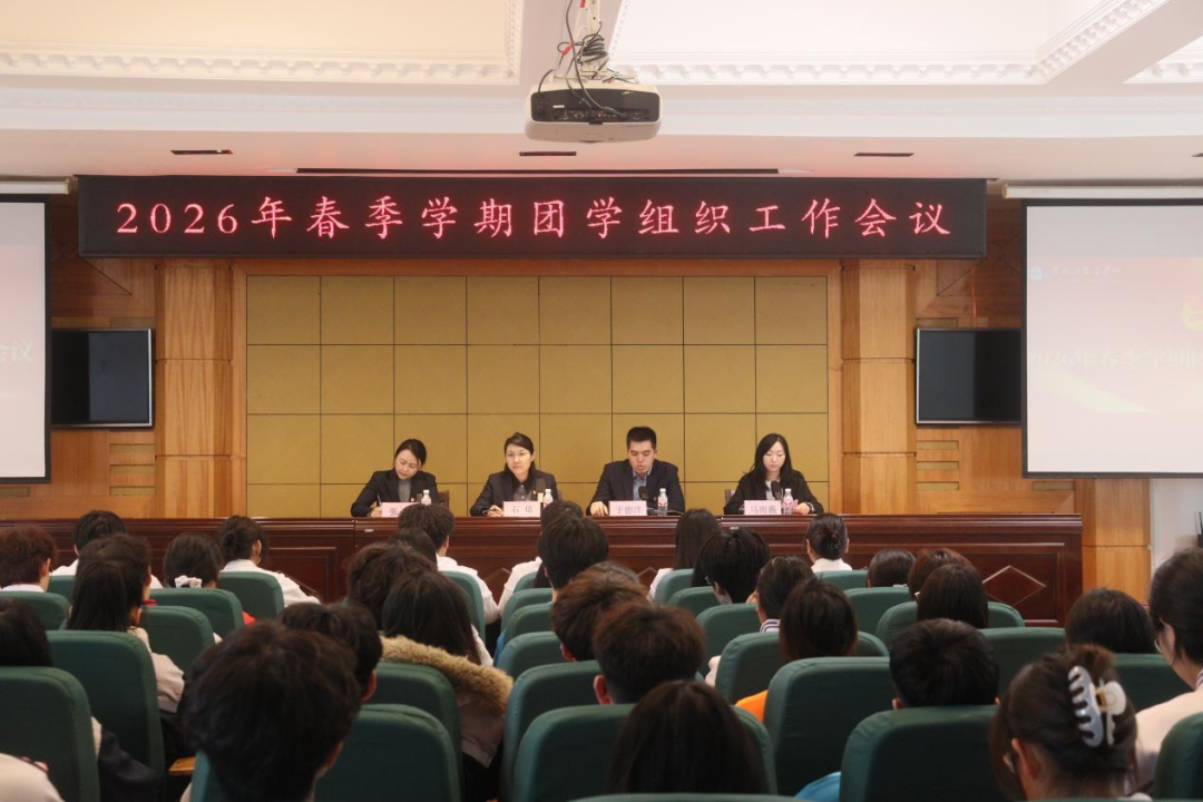 为明确2026年春季学期团学组织工作方向与核心任务,统筹部署各项团学工作开展,凝聚奋进力量,推动团学工作高质量发展,3月9日中午,2026年春季学期团学组织工作会议在清华楼经济报告厅召开。校团委全体教师、校团委直属团学组织全体成员参加本次会议。会议由校团委副书记于德洋主持。