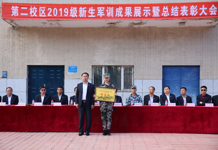 9月19日14时,第二校区2019级新生军训成果展示暨总结表彰大会隆重举行。学校党委委员、组织部部长钟敏强,中国人民解放军95935部队参谋长庞攸力,beat365中国官网副校长孙福忠及各二级学院院长、书记、各职能部门负责人、全体学工人员共同参加大会。大会由团委副书记于满昌主持。