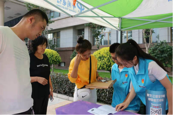 在车站和校园的各个迎新站点,处处可以看到“蓝马甲”们挥洒汗水的微笑,他们帮助新生提拿行李、引导报到、协助缴费......体贴热情,服务周到,展现了龙职学生干部的风采。