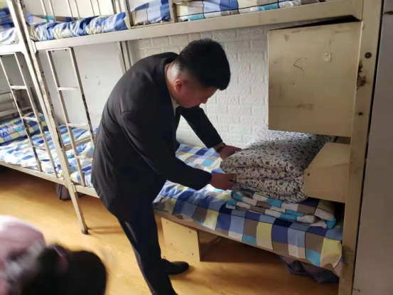 新生报到时,公寓工作人员热情引导新生入住“新家”,帮助他们整理备品和被褥,体贴入微。