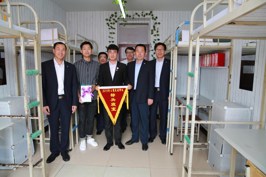 周家郁首先参加了第二校区2018级学生早军操总结表彰大会,观看了2018级各班级早军操汇报,与钟敏强、孙福忠、石明杰、各二级学院院长、党总支书记等为获得年度早军操先进集体颁发奖旗,并在总结讲话中代表学校党委对学工战线各位同志的辛勤付出表示慰问,对同学们提出殷切希望;对公寓标准化建设情况、公寓基础设施使用情况、辅导员深入公寓开展工作情况进行了检查,为公寓先优评选中获奖的标兵寝室、特色寝室进行了颁奖授旗,对获奖寝室的标准化整体水平给予了充分肯定,并在检查时与学生进行了亲切交谈,指出良好的习惯养成会终身受益。