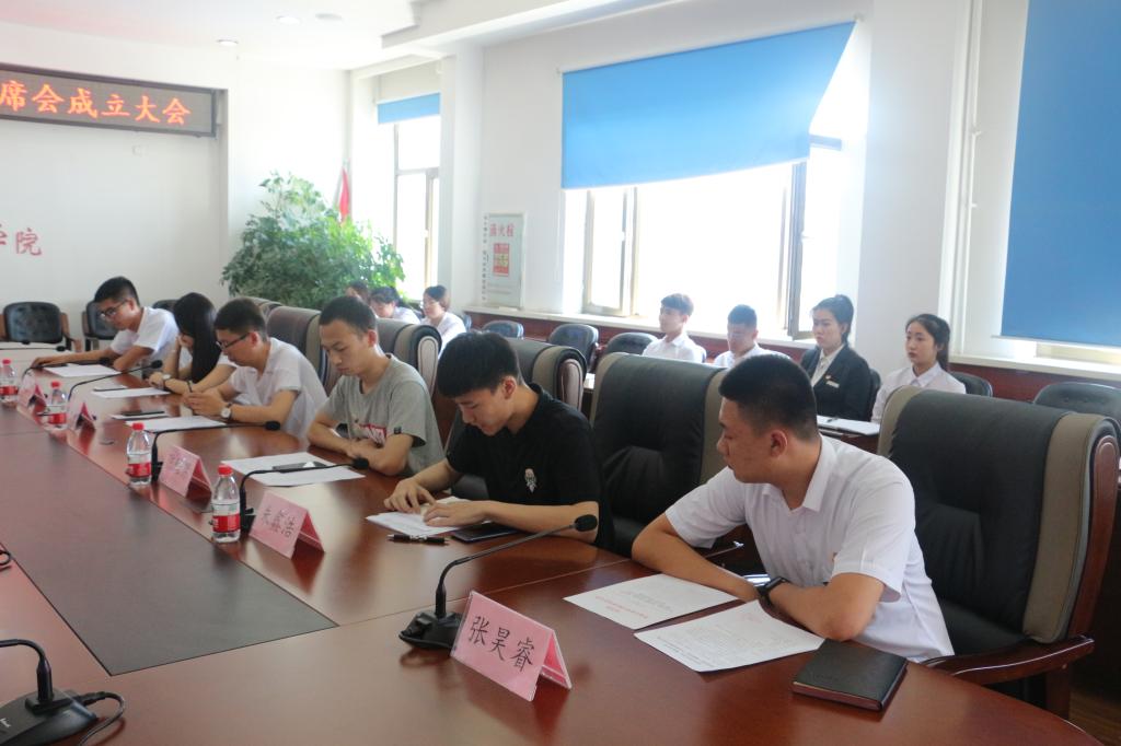 6月24日中午,校团委组织召开了2018级校院两级学生组织主席团联席会成立大会。校团委书记邹春雷出席会议并作了讲话,来自校学生会、校社团联合会、校新媒体中心、校学生纪管委、校学生公寓委、校学生军操委、校学生关心委、校学生综合委、校学生信息委、校学生伙食委以及各分院团总支副书记、学生会主席、社联主席 等42名同学参加了会议。会议由校团委学生副书记朱鑫浩主持。
