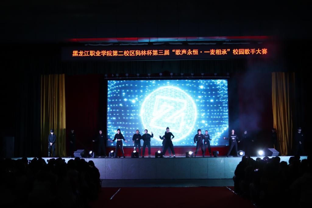 2019年11月18日18时,由第二校区学工部主办、各二级学院承办、校学生会协办,犸林文化有限公司独家赞助的犸林杯第三届“歌声永恒,一脉相承”校园歌手大赛,在体育馆成功举办。学工部副部长赵彦生、各二级学院学工副院长、团总支书记参加活动。大赛邀请具有音乐专长的校区教师、黑龙江广播高校台PS早安秀主持人宋微和犸林文化有限公司总经理李博文等7名评委,与1300余名观众共同见证选手们的精彩表现。