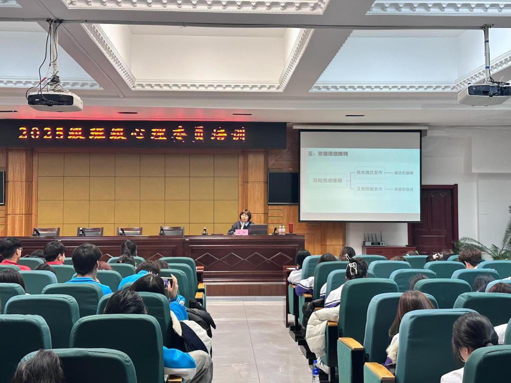 班级心理委员是校园心理健康防线的重要基层力量,其专业能力直接关系到同学们的心理成长与校园和谐。为进一步提升班级心理委员的专业素养与工作能力,充分发挥其桥梁纽带作用,beat365于2025年11月10日至12日在清华楼经济报告厅开展了班级心理委员专题培训活动,二校区同步视频参加培训。