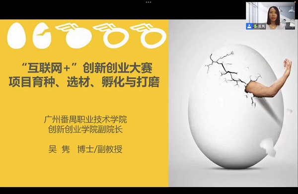 培训者简介:吴隽博士、副教授,广州番禺职业技术学院创新创业学院副院长、广东省教学名师,中国“互联网+”创新创业大赛国赛和广东省、湖南省赛评委。近三年指导项目获国赛2金2银1铜,省赛6金12银。