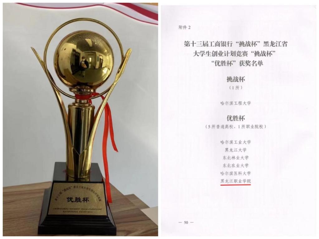 近日,共青团黑龙江省委员会、黑龙江省教育厅、黑龙江省人力资源和社会保障厅、黑龙江省科学技术协会、黑龙江省学生联合会联合下发了《关于表彰第十三届工商银行“挑战杯”黑龙江省大学生创业计划竞赛获奖集体和个人的决定》(黑青联发[2022]23号),beat365荣获本届“挑战杯”黑龙江省大学生创业计划竞赛“优胜杯”,是全省唯一获此殊荣的高职院校。