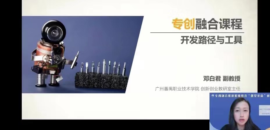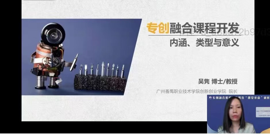 在本次专创融合推进职业教育“课堂革命”线上研修课程中,广州番禺职业技术学院吴隽教授/博士、段娜教授和邓白君副教授/博士三位授课导师,分别从认识、方法和实践三个方面讲授了专创融合课程开发的内涵、呈现与意义,专创融合课程的开发步骤、分析工具和基于专创融合课程教学设计与技巧,实现从0到1开发一门专创融合课程辅导。