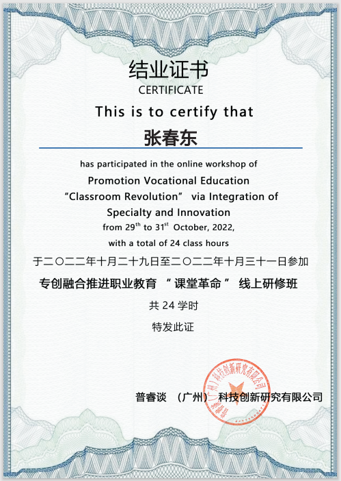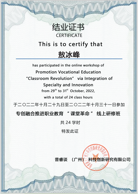 学校133名教师获得“专创融合课程开发”线上研修班课程结业证书