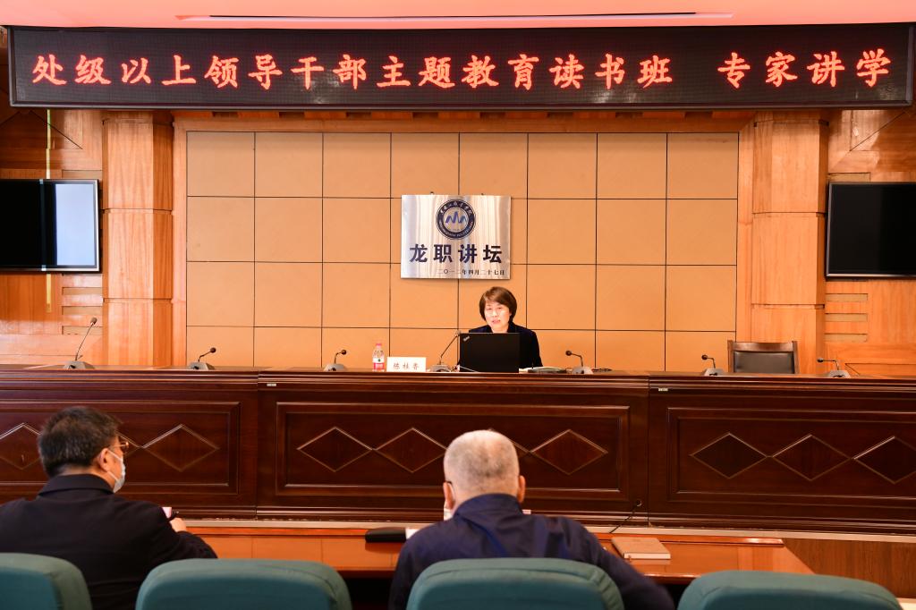 于大海、崔长杰与学校领导班子成员、全体处级领导干部一起凝听了学校马克思主义学院教授陈桂香作的题为《习近平新时代中国特色社会主义思想的世界观和方法论》专题讲座。