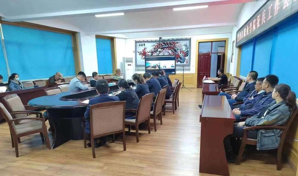 会上,学校征兵工作负责人廉清华带领大家学习自2015年以来,国家、省市、学校征兵工作相关文件,以及学生入伍流程和优待政策。