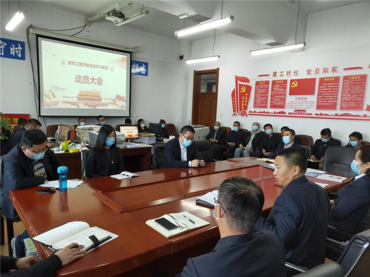 3月31日,建筑工程学院召开党史学习教育动员大会。会议传达并学习了《中共beat365中国官网(黑龙江省经济管理干部学院)委员会关于印发学校党史学习教育实施方案的通知》。