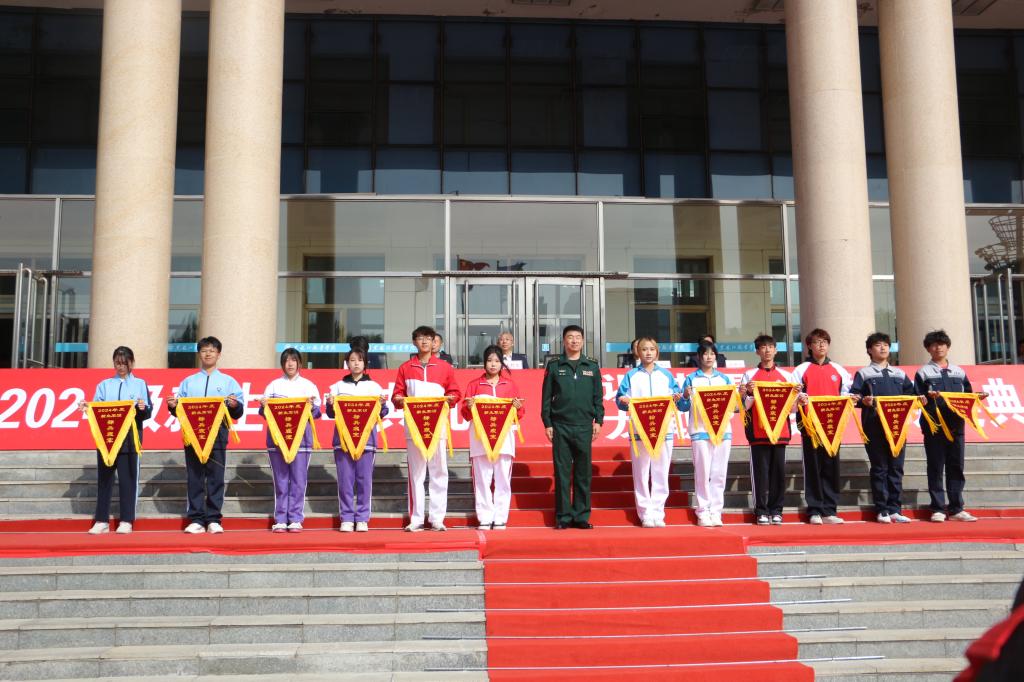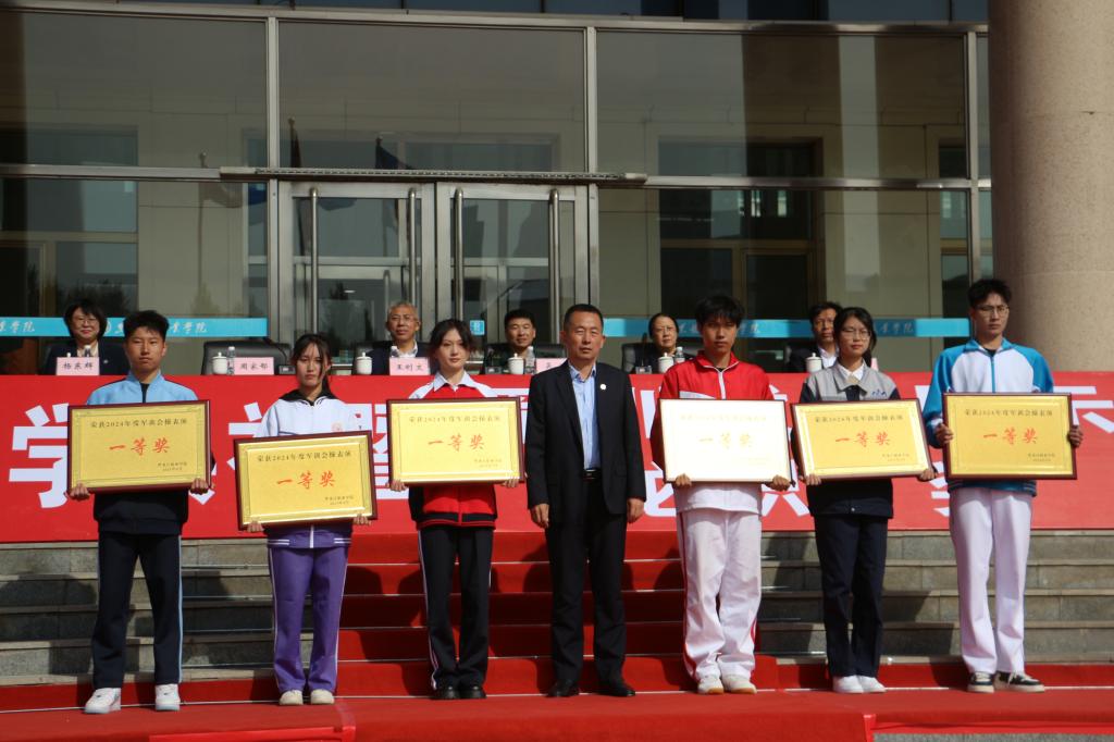 ▲学生工作部部长赵彦生为分列式三等奖代表颁奖