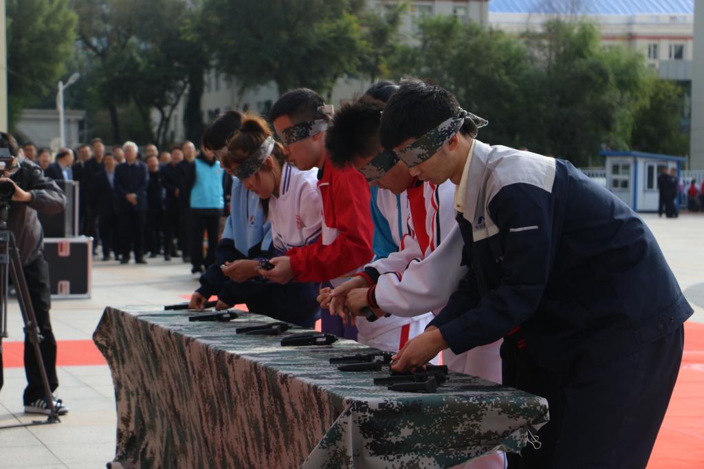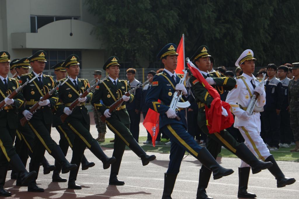 8时30分,英姿飒爽的国旗护卫队队员迈着整齐的步伐护送鲜艳的五星红旗入场,大会在庄严的国歌声中拉开序幕。伴着激昂的分列式进行曲,各方队的同学以饱满的热情、矫健的步伐、响亮的口号依次经过主席台接受检阅。他们精神抖擞,动作整齐,展现出新时代大学生应有的朝气蓬勃和昂扬向上的精神风貌。各学院代表队分别进行了枪械分解、队列、刺杀、擒敌拳、战术队形、战术对抗等军训科目展示。