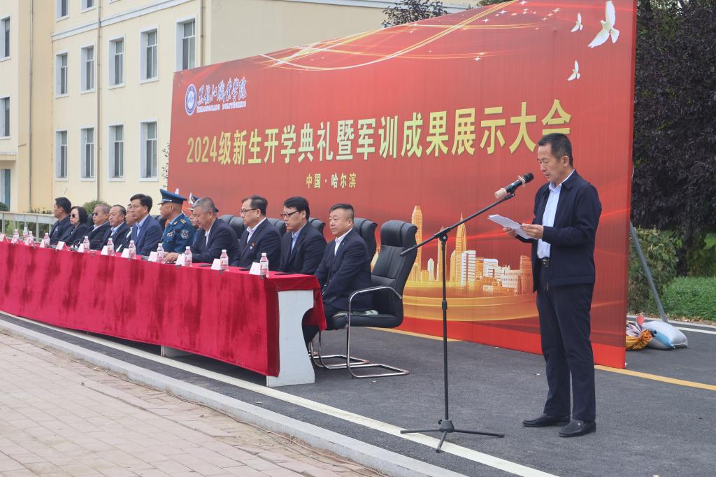 9月23日,学校在运动场隆重举行2024级新生开学典礼暨军训成果展示、“龙职”奖颁奖大会。武警哈尔滨支队中校吴鹏,学校校长王利文,党委副书记周家郁,副校长吴艳秋,党委委员、宣传统战部部长杨东辉,党委委员、组织部部长石明杰出席活动,2024级全体新生和全校教职工参加大会。大会由周家郁主持。