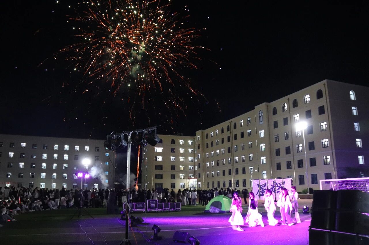 本次音乐节不仅有精心筹备的曲目和舞蹈,更有来自辅导员老师和大一新生的上台展示,现场报名人数高达180余人,场面火爆。从经典老歌到潮流新曲,从深情独唱到热血电音,所有的音符交织在一起,回荡在校园的夜空。台下,同学们随着节奏摇摆,打开手机闪光灯汇成一片温暖的星海,与舞台上的“星辉”交相呼应,掌声、喝彩声、合唱声此起彼伏,现场化作一片欢乐的海洋,一场盛大的烟花秀,更是将音乐节的气氛推向高潮。