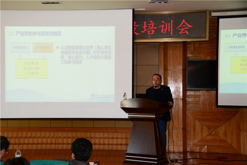 培训分别由五位老师进行汇报。信息工程学院院长金忠伟以计算机网络技术专业悉尼协议认证工作为切入点,以二级学院的角度谈专业认证如何推动专业建设国际化,最终使学院整体工作得到提升;机械工程学院教学负责人李子峰结合悉尼协议认证标准,介绍了认证与专业建设之间的关系,如何对照认证规范找出专业建设的不足,寻找专业建设持续改进的方向;旅游与人文艺术学院酒店管理教研室主任徐得红以酒店管理专业为例,介绍顶点课程设计、实施、改进的全过程;思想政治教研部德育教研室主任徐永慧以《思想道德修养与法律基础》为例,介绍如何以课程教学内容为抓手,进行课程改革,达到预期效果的全过程;通识教育学院中文教研室副主任王湘伟以《高职语文》为例介绍“三化”教学模式实施情况。