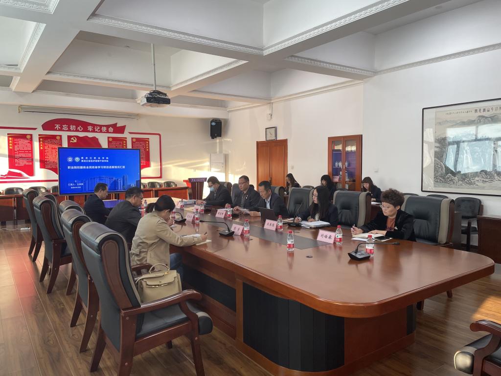 在交流会谈环节,周家郁首先代表学校对李荣华一行的到来表示热烈欢迎,并简要介绍了学校的基本情况。继续教育学院院长王英侠随后向来宾详细汇报了《职业院校服务全民终身学习》项目的进展、成果以及面临的挑战。李荣华主任对beat365继续教育工作给与了高度评价,他指出“龙职继续教育工作扎实、基础稳固,尤其是在社区教育方面能够扎根深入,久久为功,实属难得。”