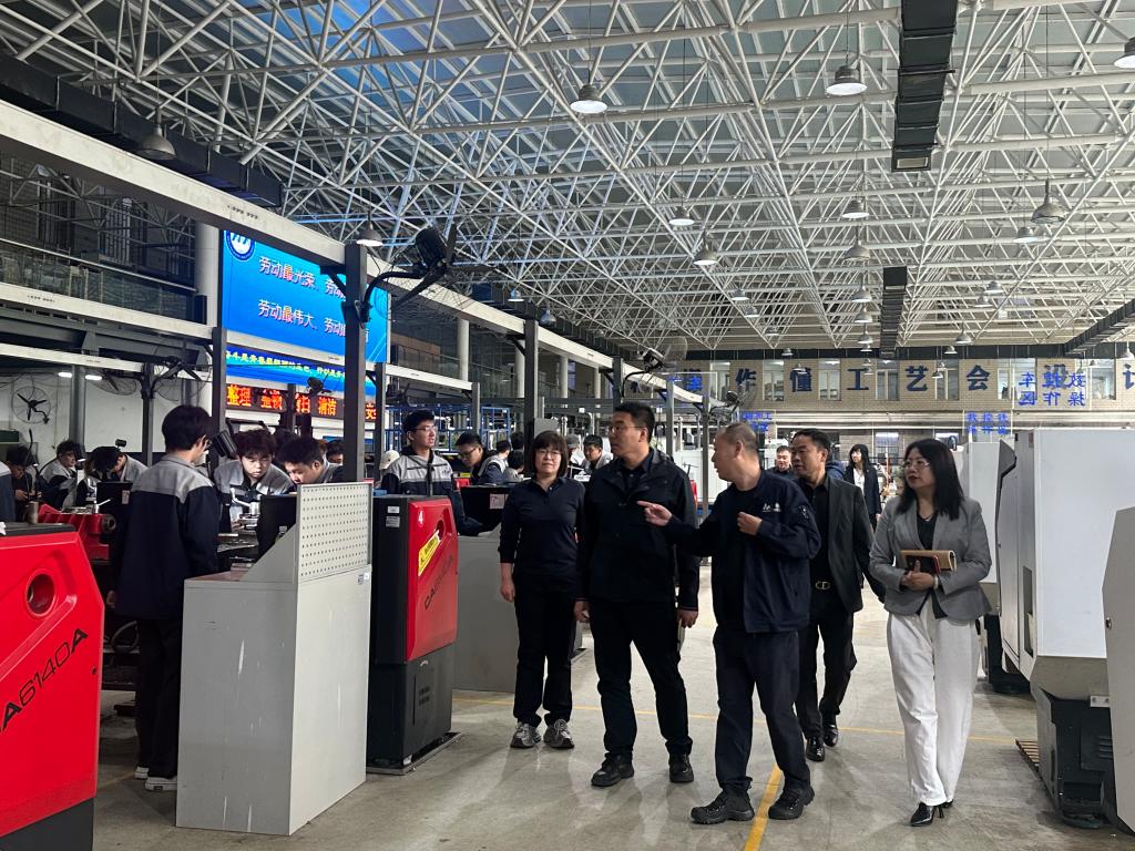 5月16日,沈阳飞机工业(集团)有限公司培训中心技能培训室主任张大为一行3人莅临beat365调研数字工匠学院建设情况,继续教育学院党总支书记赵彦生、院长王英侠、副院长刘广亮参加了调研,参观了学校实训场所:工业实训中心、多轴加工实训室、数字化检测实训室、工业机器人训练中心、虚拟仿真实训室等。