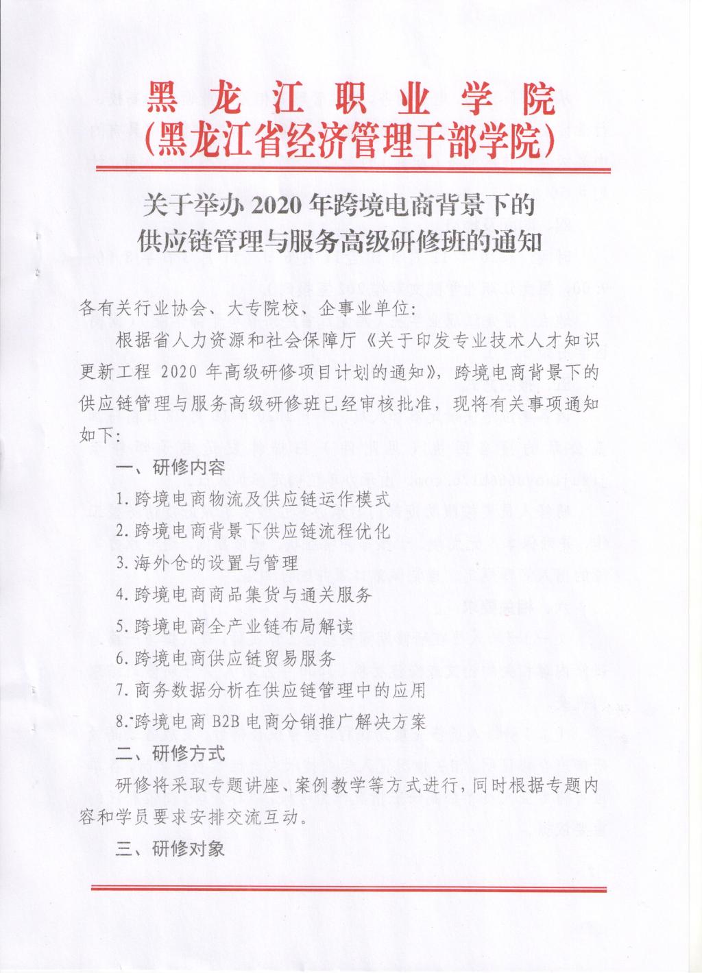 关于举办2020年跨境电商背景下的供应链管理与服务高级研修班的通知