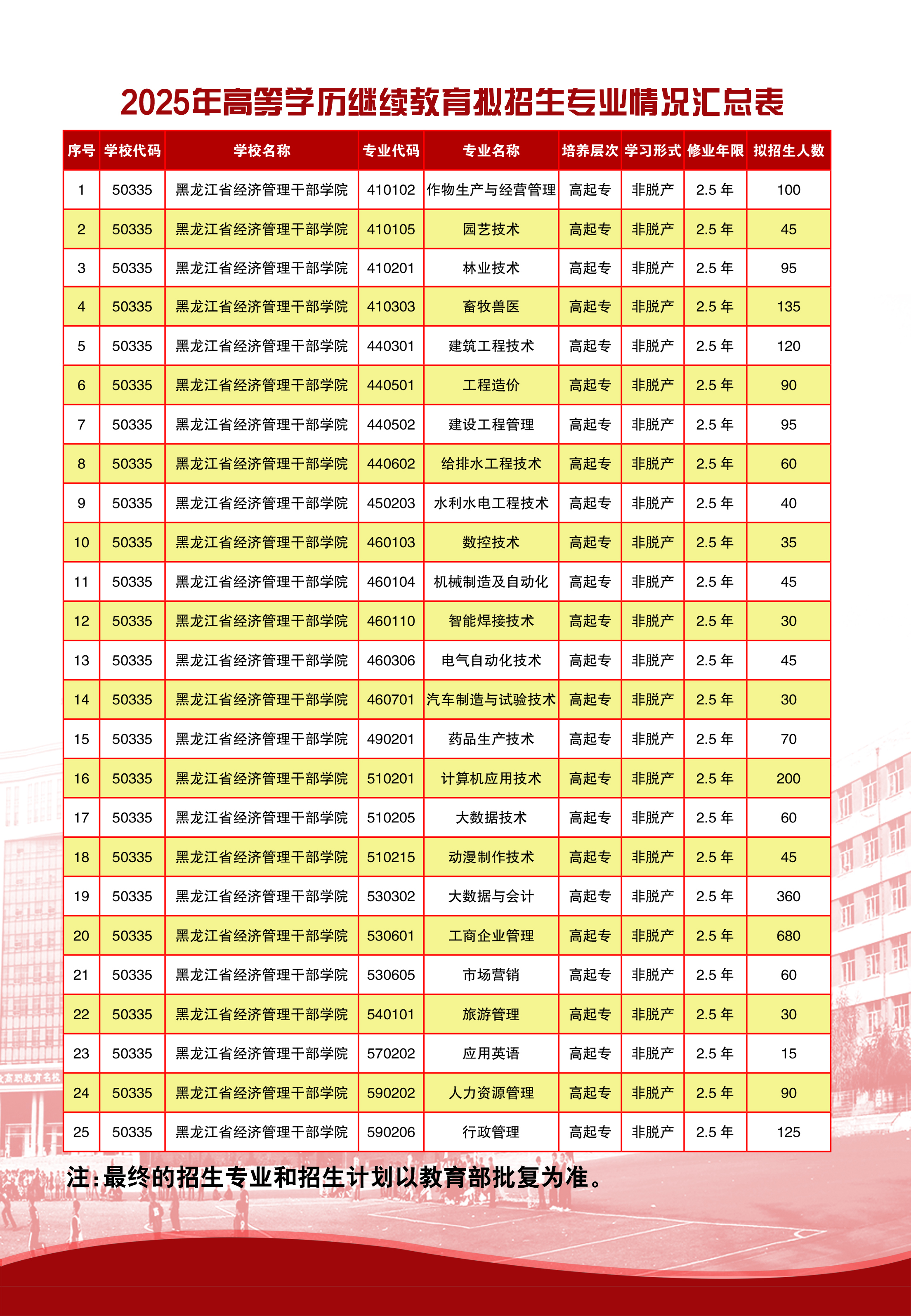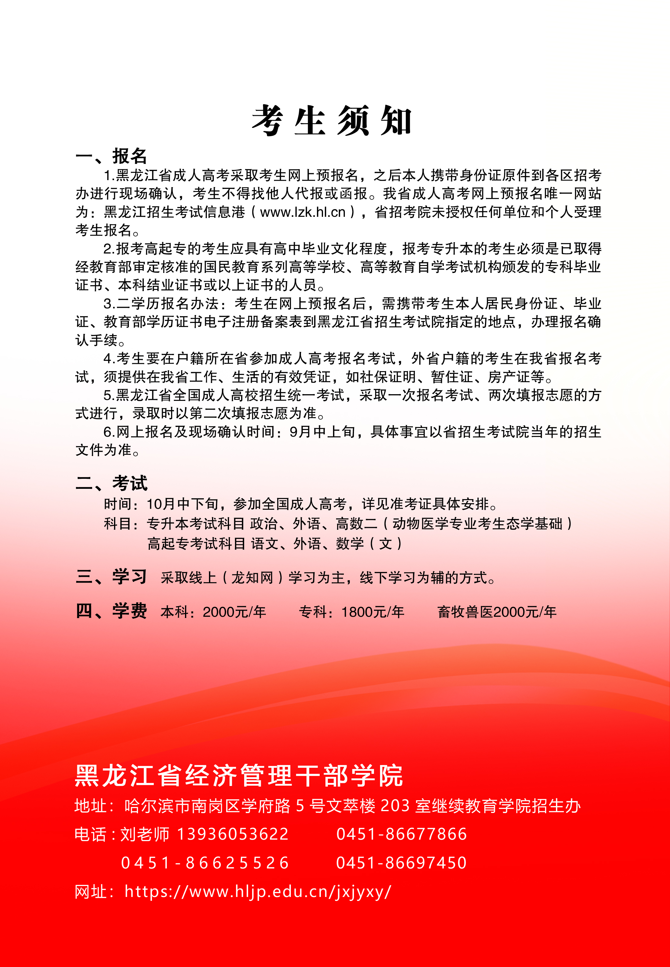 黑龙江省经济管理干部学院2025年成人学历教育本、专科开始招生