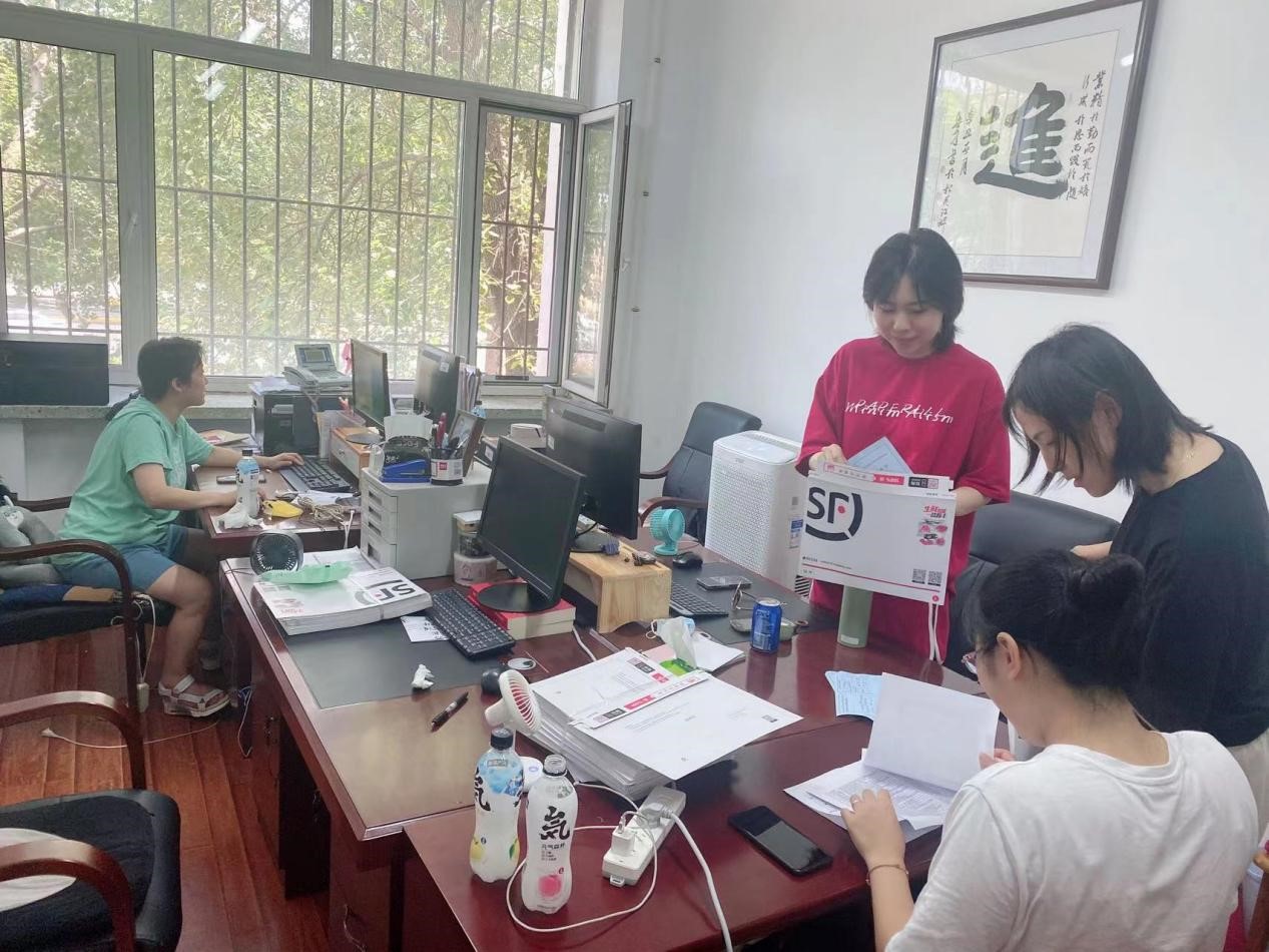 三、 邮寄毕业证书,确保派遣质量。为保证学生毕业证、派遣证及时、准确、安全邮寄,全体辅导员纷纷化身为“快递员”“打包员”,分工协作、耐心复核、细致包装、精心邮寄……用最质朴的举动、最真挚的情感助力这场“毕业寄”,完成最后一步。