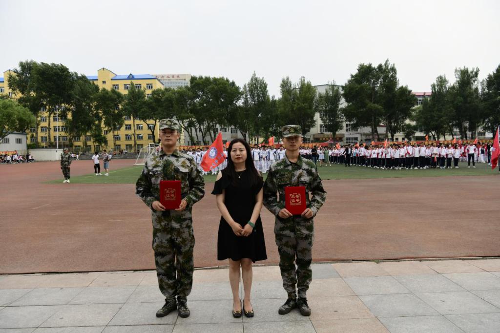 学生处副处长陈宇辉同志宣读2020-2021学年学生早军操评比表彰奖励决定;校团委书记邹春雷为40个获得“军操标兵班”荣誉称号的班级颁奖;学工部直属党支部负责人王英侠为“军操管理委员会”、“国旗护卫队”两个学生团体颁发“组织军操特别贡献奖”;学校党委副书记周家郁为获得“军操综合评比一、二、三等奖”的学院颁奖,其中工商管理学院荣获“军操综合评比一等奖”。