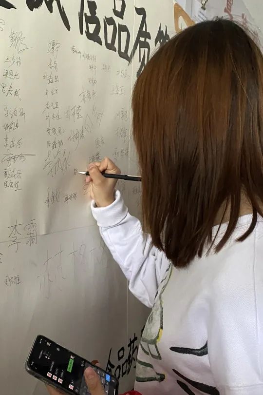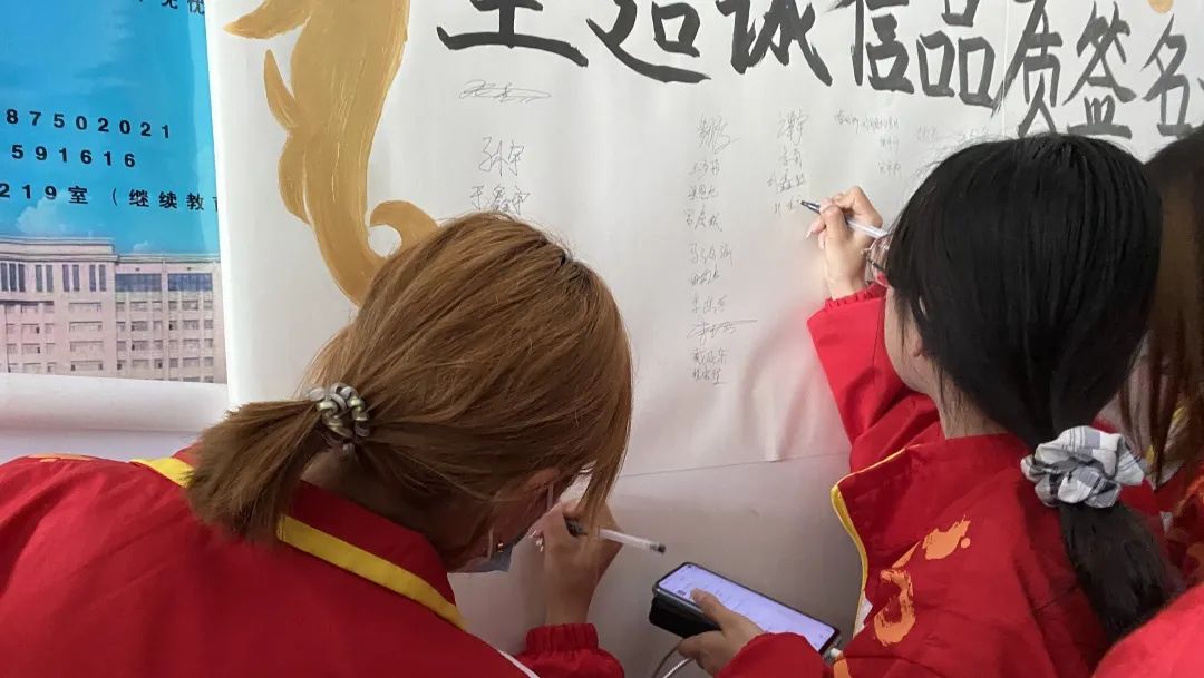 活动现场人头攒动,同学们积极参加,他们相继在画板上签下自己的名字,现场签名的氛围充分体现了食药学子的责任意识和诚信意识。