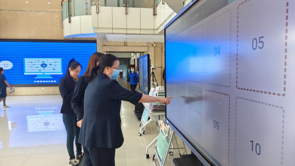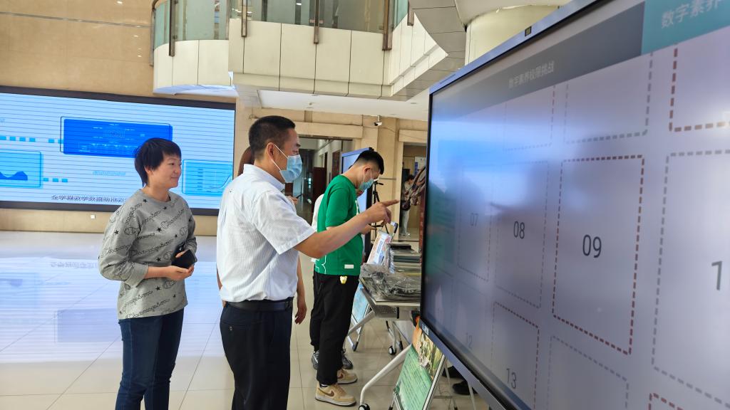 6月7日,学校在清华楼大厅举行数字素养有奖竞答和数字校园主题活动。党委委员、副校长吴艳秋,党委委员、纪委书记李伟现场体验有奖竞答环节。