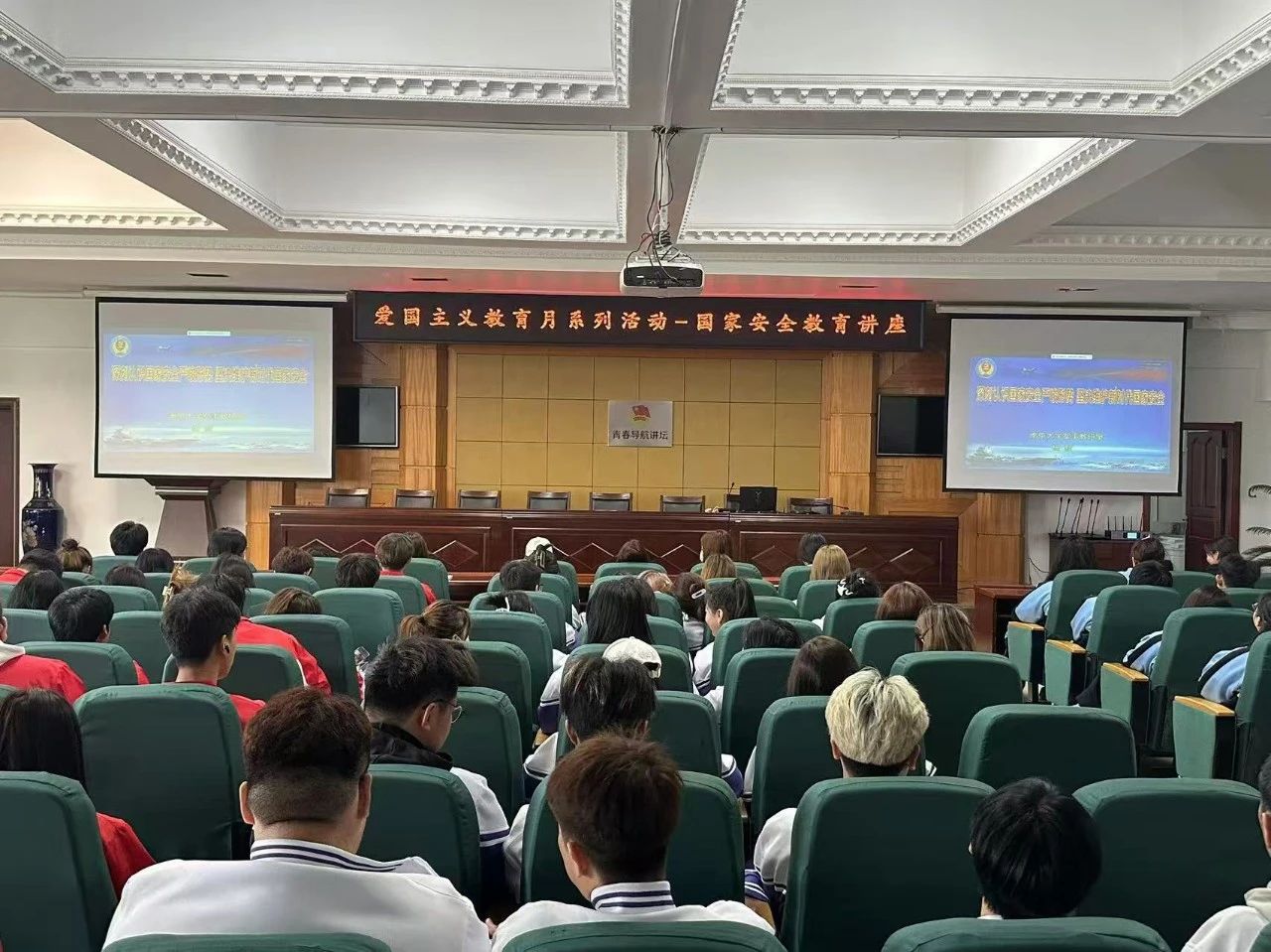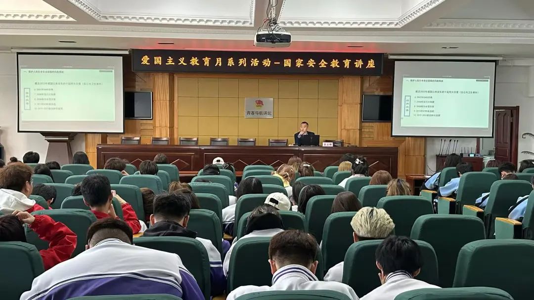 杨新教授以线上连线的方式与现场师生互动交流,他结合实际工作分享了国家安全教育的宝贵经验和有效做法,引导同学们深刻理解国家安全面临的复杂挑战与机遇,全方位阐述总体国家安全观的丰富内涵,引导同学们在日常生活中不断增强国家安全意识和法治素养。姜立峰老师对国家安全的重要意义进行了深刻阐释,他详细分析了当前国家安全所面临的挑战,并且明确指出大学生维护国家安全的具体路径,通过一个个生动的案例和一组组详实的数据,使在场学生真切地感受到国家安全与每个人息息相关,深刻认识到维护国家安全是每个公民的神圣职责。