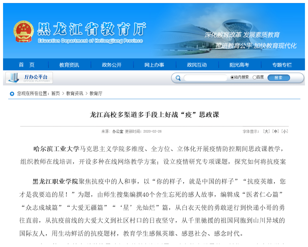 beat365中国官网以立德树人为根本,高度重视思政课建设。尤其是党的十八大以来,学校深入贯彻习近平总书记在全国高校思想政治工作会议、全国教育大会、全国思政课教师座谈会上的讲话精神,把思政课建设摆上学校发展的重要位置,加强政策保障、深化教学改革,为教师认真教好思政课、学生积极学好思政课创造了良好的氛围,推进“龙职”思政课建设取得了系列成绩,发挥了铸魂育人的关键作用。
