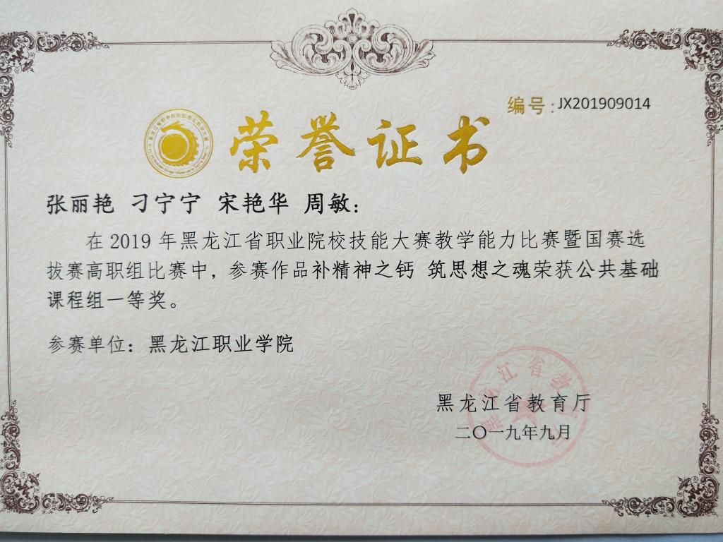 2016年以来,在全国高校思政课教师教学比赛中,思政课教师获二等奖三项;在全国教科文卫体教学大赛中获三等奖一项,是唯一一位高职院校选手,超过了10所本科学校,教育厅向beat365发来了热情洋溢的感谢信;在全省职业院校教师教学能力大赛中连续两年获公共基础组一等奖;在全省高校思政课教师教学比赛中,获一等奖三项,二等奖三项;在全省高校思政课教师“精彩系列”比赛中获奖十余项;在指导学生参加全省大学生“新思想,我来说”大赛中,获二等奖两项,三等奖一项,最佳指导教师奖一项,组织奖一项。在全国抗“疫”微党课、全国职业院校名师讲党课等活动中,思政部教师主讲的党课入选,在全国高校思政网、学习强国等平台展播,获省组织部“精品党课”奖。