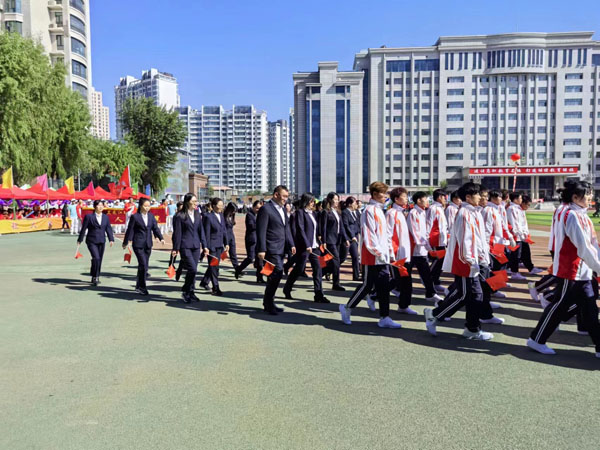 开幕式上,我院师生迈着坚实有力的步伐,伴随着铿锵有力的口号声,向着属于我们的胜利进发!!!