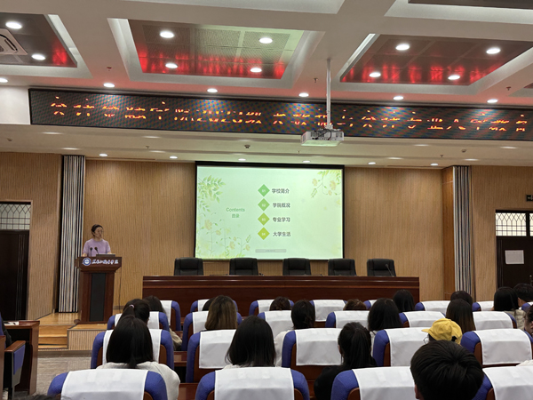 大数据与财务管理教研室主任杨鑫慧从学院发展、师资队伍、专业建设等方面进行了介绍,并针对课程体系设置、资格证书考取、顶岗实习、专升本和毕业后的就业进行了详细讲解。