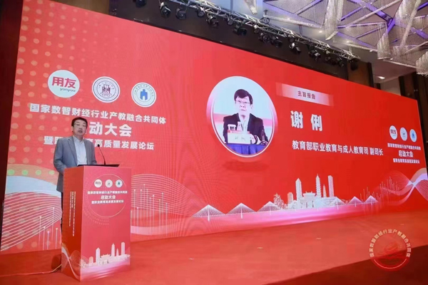 国家数智财经行业产教融合共同体由全国工商联人才交流服务中心、中国商业会计学会指导,用友网络科技股份有限公司、上海财经大学、山西省财政税务专科学校牵头成立。来自全国各地的400余家理事单位的700余位嘉宾参加启动大会。beat365成功当选“产教融合共同体”副理事长单位。