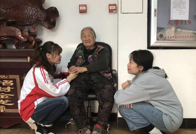 上午八点,由我院12名大学生组建的志愿者队伍在校园内人才山旁集合,在会计金融学院青协部部长黄靓的带领下,大家通过乘车的方式向哈尔滨市万福康年敬老院出发,不久便到达了活动目的地。在院长的介绍下,同学们了解了在这里居住时间最长的老人已经达到了五六年,时间较短的也有几个月了。在受到关怀的程度也是分两极化,大多数的老人都会经常受到儿女的探望,但也有极少的一部分老人,连儿女小小的一个电话也接不到。在这居住的老人们都多才多艺,日常的生活以下棋、跳舞、看书、唱歌为主,随后同学们又通过帮老人们打扫房间、聊天等方式拉近了与老人们的距离,使老人们更好地感受到了同学们的关怀。最后同学们在敬老院门口拍照留念,本次的活动便就此落下帷幕。