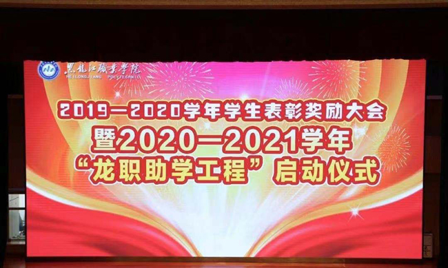 大会伊始全体成员起立,奏唱《中华人民共和国国歌》。会议第二项先后宣读了《关于表彰2019-2020学年学校奖学金获得者及学习先优模的决定》、《2020-2021学年“龙职助学工程”实施方案》两项重要文件。会议第三项进行颁奖及返程车票发放仪式:由我院朱晓旭同学代表“优秀学习小组”代表上台领奖;张倩菲同学作为“三好学生”代表上台领奖;宋莹莹同学作为“奖学金获得者”代表上台领奖。接下来会议进行“龙职助学工程”结对子暨越冬棉衣返程车票发放仪式。由王利文校长对我院张星宇同学进行“一对一”结对子。会议第五项由贾英琦同学作为“三好学生”代表上台发言。