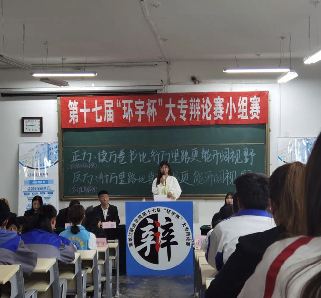 旅游与人文学院与我院分别作为正反两方,以“读万卷书和行万里路谁更能开阔视野”为辩题,在双方简洁的自我介绍后正式开展辩论。在攻辩环节双方辩手展现了赛前的充分准备,以其灵活的思维和缜密的逻辑,引来台下观众的阵阵叫好。