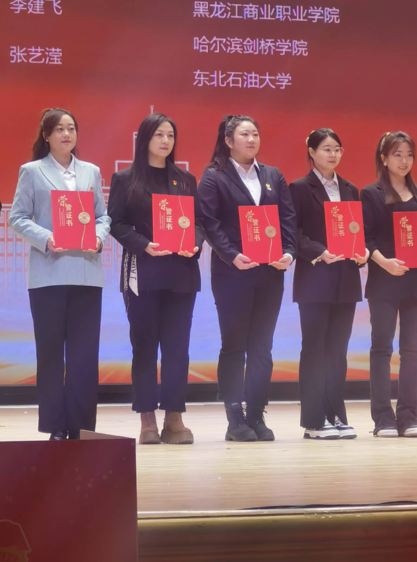 2024年12月11日,黑龙江省“思政领航 筑梦青春”团课大赛在东北林业大学科学会堂举行。大赛启动后,各高校积极响应。我院两支队伍经过校级初赛进入省级评审阶段,分别荣获教师组省级三等奖和学生组省级二等奖。学生组获奖团队由孙禹彤、孙萌、马雨竹、张宝丹四人组成,作品以实践研学为主题,展现了青年学生的蓬勃朝气与爱国情怀。教师组获奖者为团总支教师副书记刘珈岐,其作品深入阐述东北抗联精神,为青年学生提供了宝贵的精神财富和思想指引。
